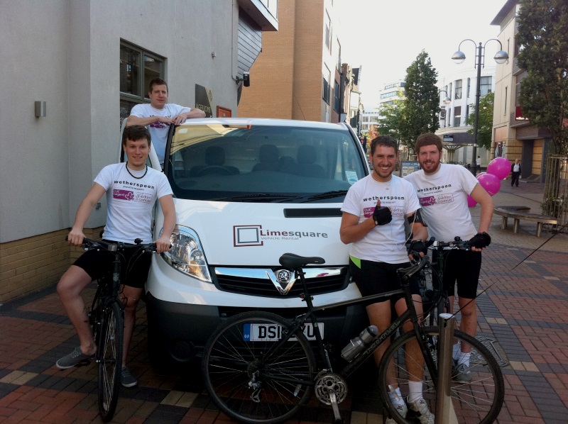 As the route across England and Scotland is a long and potentially treacherous one, a fourth member of the team drove a back-up van in support of the group, repairing the bikes as necessary and storing them overnight. This van was provided free of charge by Limesquare Vehicle Rental, who was keen to support such a worthy cause.